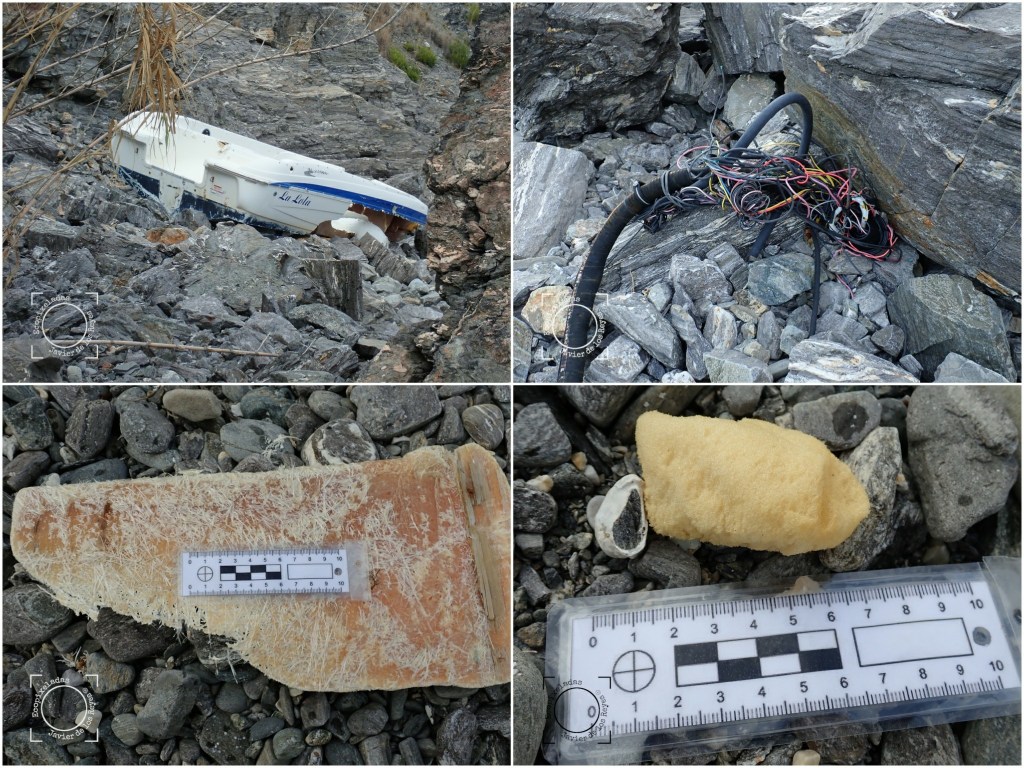 Con lo que no podíamos hacer nada era con una barca de 6m de eslora destrozada contra las rocas; el motor lo he encontrado este verano a tres metros de profundidad, cableado, electrónica, fibra de vidrio, espuma aislante. Debía de carecer de seguro porque lleva meses en ese estado; debe ser como esos coches que se pasan meses en un arcén hasta que solo queda el chasis, sólo que en este caso es el mar el que se lo va llevando todo. Pudimos recoger fragmentos de espuma y fibra dispersos por toda la orilla.