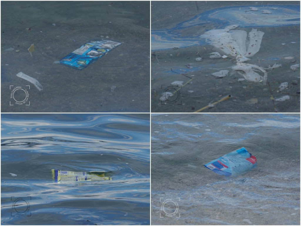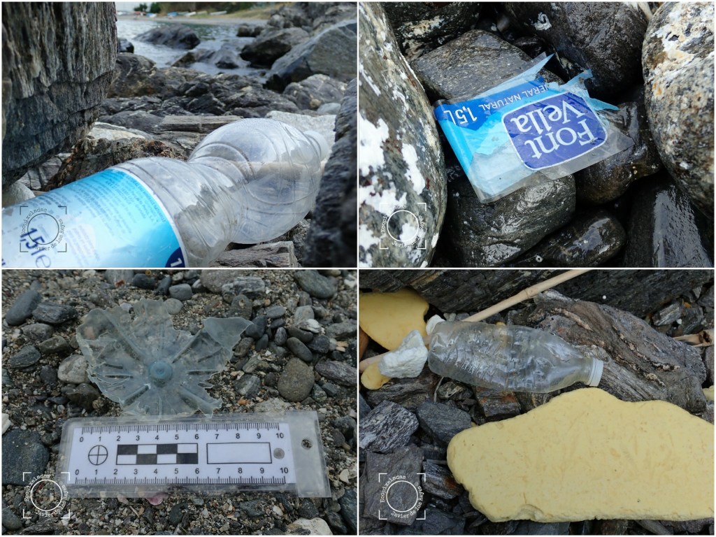 Los envases no permanecen inalterables en un medio hostil como es el marino; se van fragmentando paulatinamente hasta convertirse en microplásticos, al igual que el resto de componentes como etiquetado, tapones, anillas.