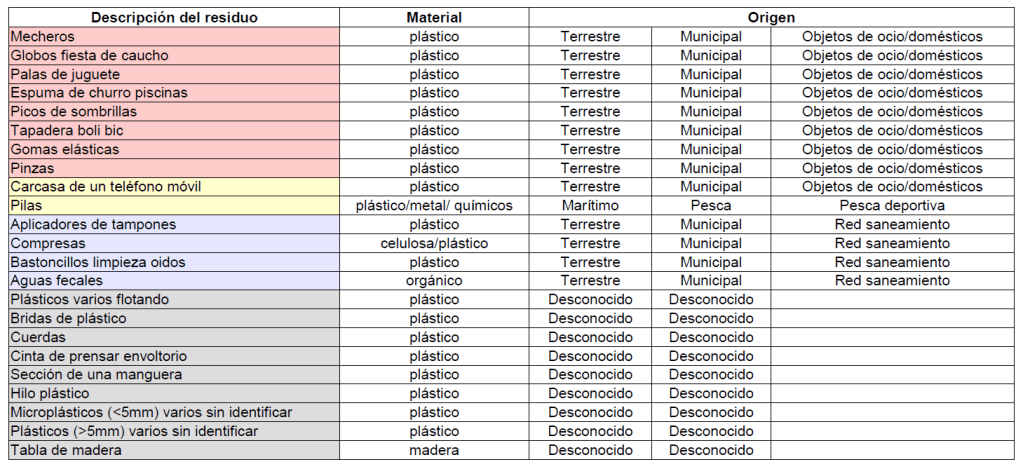 Algunos de los residuos son una clara evidencia de haber sido parte de vertidos de aguas residuales sin tratar, tales como bastoncillos de los oídos, compresas y aplicadores de tampones. España ha sido sancionada recientemente por incumplir la normativa Europea en materia de tratamiento de aguas y para muestra un botón. Además, es indicativo de las prácticas inadecuadas por parte de los consumidores de dichos productos a la hora de desecharlos, pues evidentemente fueron arrojados a un váter.