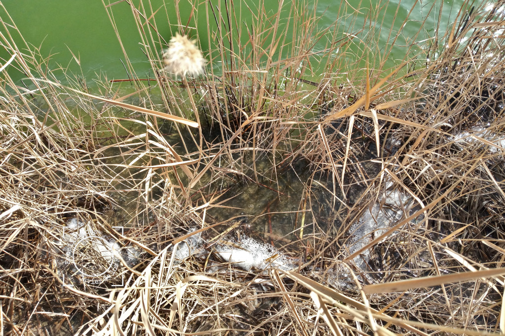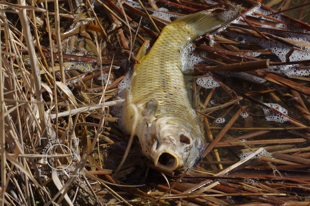 El Mar de Ontígola, en Aranjuez, es un humedal con un delicado equilibrio debido a su pequeño tamaño y por encontrarse fragmentado por numerosas barreras e infraestructuras. Cualquier visita en seguida delata a simple vista si algo no va bien, y en el último paseo nos llevamos una desagradable sorpresa detrás de otra. Lo primero que llamaba la atención era un nivel de la lámina de agua más bajo de lo habitual, en segundo lugar un color verde intenso de las aguas poco frecuente, en tercer lugar la presencia de peces muertos en los márgenes y en cuarto lugar espumas entre los juncos y en la orilla.