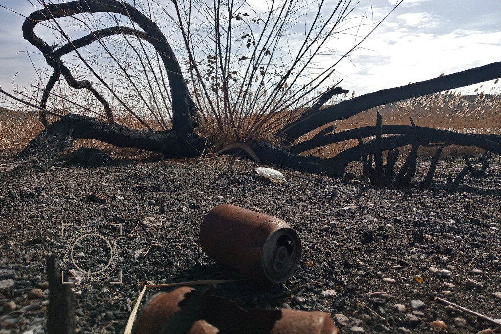 Incorporo de nuevo algunas fotografías recientes del estado actual a fecha 12 de febrero 2023; todo sigue como antes, cada lata en su sitio degradándose en el fango o quemadas entre la negra vegetación que aún no se ha regenerado, el antiguo vertedero de escombros a la vista o las cuevas habitadas.